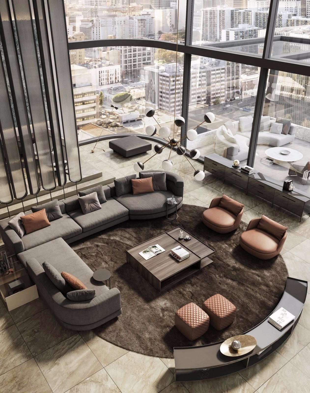 俯瞰整个一层,给人大气恢弘的感受,整个空间奢华***。
