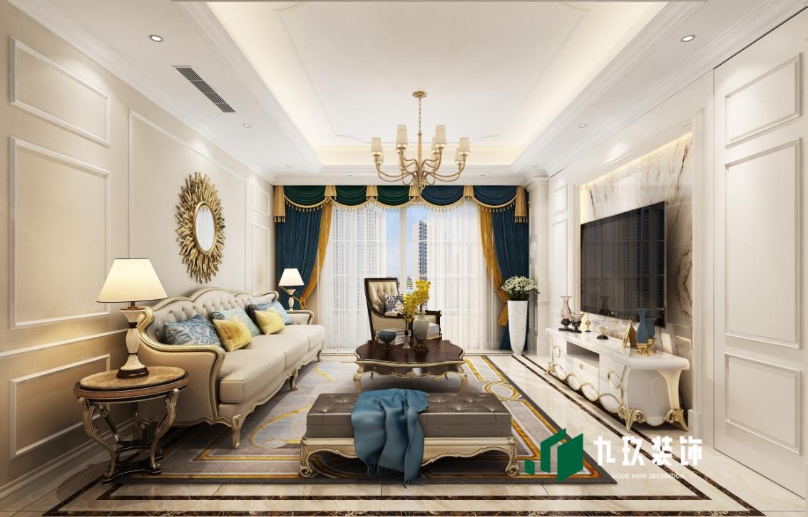 客厅效果图,经典的欧式风格,暖色系列