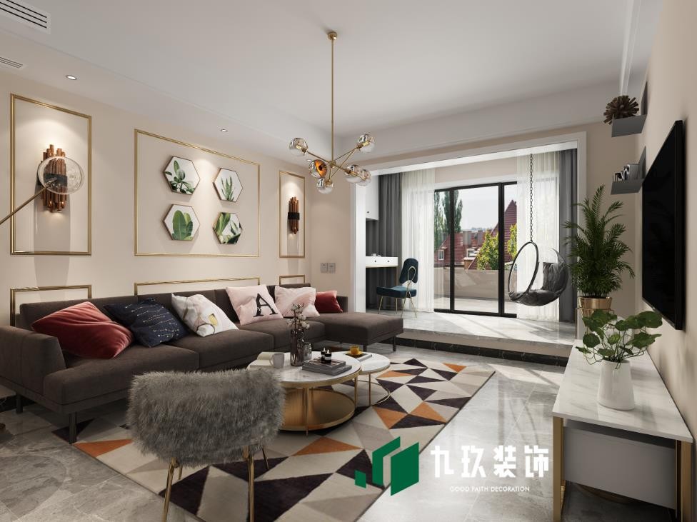 客厅效果图,现代轻奢,暖色系列